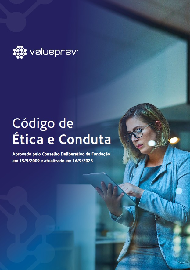 A ética reflete a moral e está frequentemente estruturada em princípios e regras que orientam as ações de uma instituição. A imagem de uma organização é moldada pelas atitudes de seus profissionais, que expressam a missão institucional. O Código de Ética e Conduta da Value Prev visa padronizar, formalizar e divulgar os valores e princípios que guiam os negócios da entidade, promovendo transparência e reforçando sua imagem. A Value Prev é signatária do Código de Condutas e Princípios Éticos do Regime Fechado de Previdência Complementar. O Código de Ética aprovado pelo Conselho Deliberativo da Fundação em 15/9/2009 e teve sua última atualização realizada em 13/8/2024